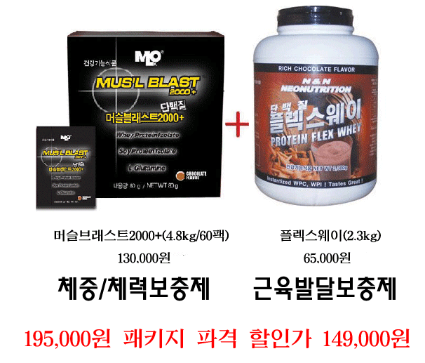 머슬브래스트2000(4.5kg/60팩)+플렉스웨이(2.3kg)체중체력+근육보충제