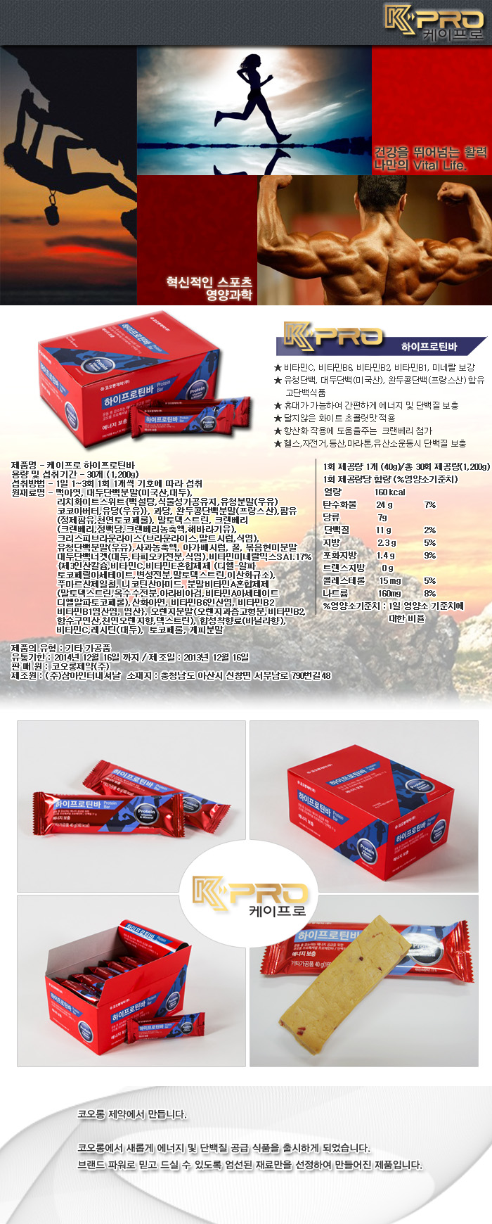 [코오롱제약 케이프로] 하이프로틴바(30EA*2box)근육