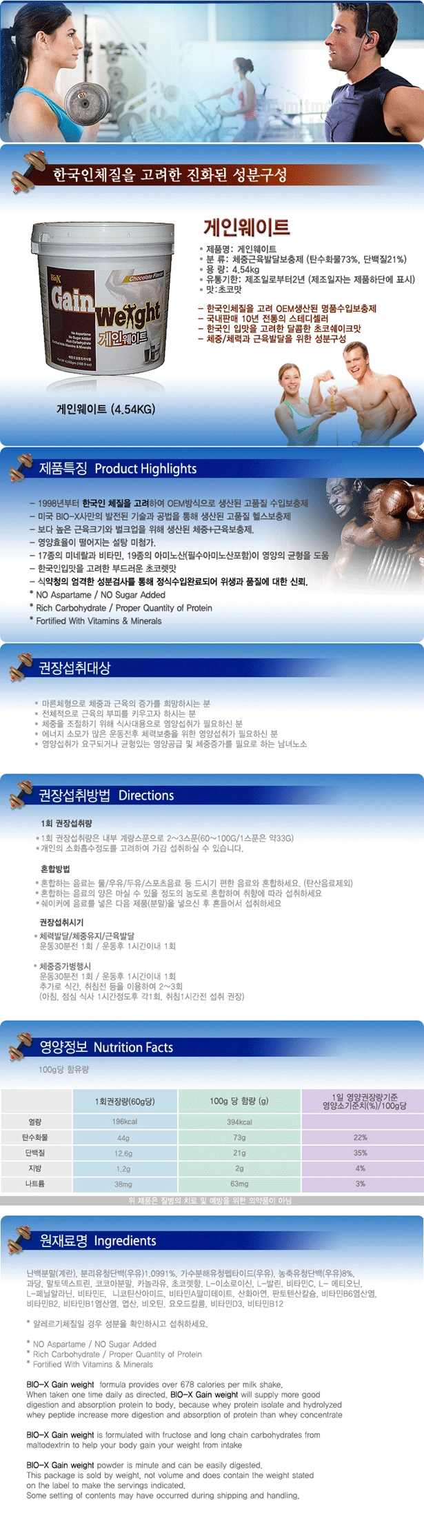 게인웨이트(4.54kg)체중체력보충제